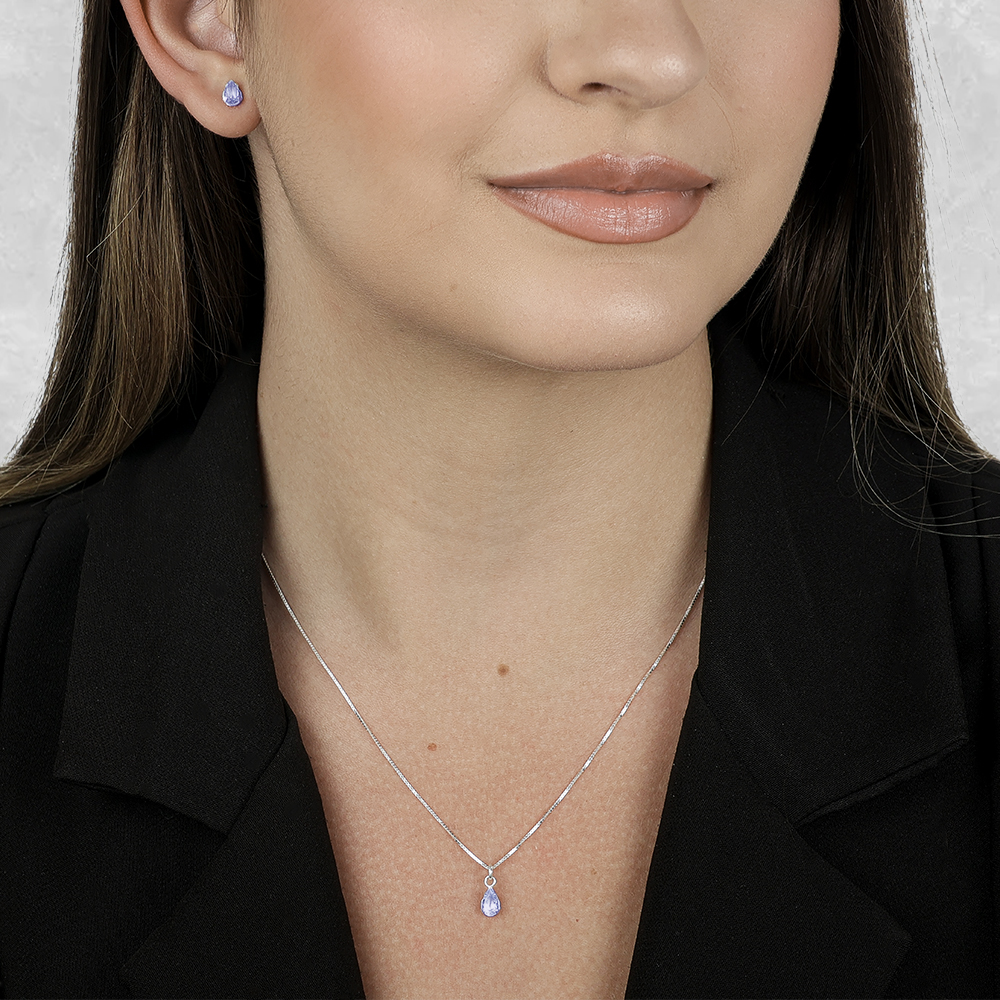 Conjunto de Gota Roxa em Zircônia Prata 925